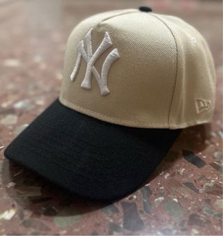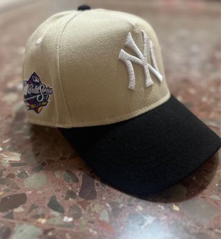 Gorra de béisbol New Era con un diseño bicolor. - Parte frontal en color beige. - Visera en color negro. - Logo NY bordado en blanco en la parte frontal. - Parche de World Series en el lateral.