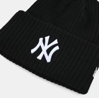 Gorro de punto con el logo de los New York Yankees. - Color negro con logo blanco. - Diseño de canalé.