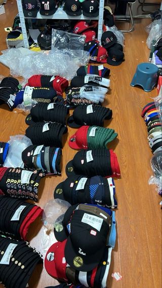 Lote de nueve gorras de diferentes estilos y diseños. - Gorra negra con logo de toro. - Gorra azul y gris con parche de águila. - Gorra negra con logo NY. - Gorra negra con logo NY. - Gorra negra con logo de letras. - Gorra negra con logo NY. - Gorra trucker blanca, naranja y negra con estrella. - Gorra trucker negra con estrella. - Gorra trucker camuflaje con logo NY. - Gorra New York 1989 American. - Gorra Goorin Bros Águila Freedom.