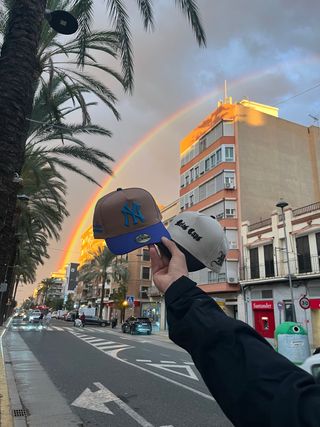 Dos gorras de béisbol con un diseño moderno. - Gorra marrón con logo NY azul. 🌇 - Gorra beige con bordado negro.⚜️ - Gorra logos de Numerologia 💯 - Gorra logos signos Zodiacales ♋️ producto MELOS CAPS 100% ORIGINAL marca Colombiana 🔥25€ 🇨🇴 New era 1.1 🔥35€