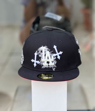 Gorra de los LA Dodgers, con su logo bordado en blanco, y seis adhesivos de la marca New Era. - Gorra talla 7 1/2. - Adhesivos 59Fifty.