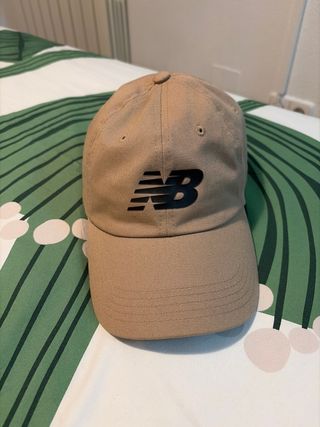 Gorra de la marca New Balance con un diseño moderno. - Color principal beige. - Logo de la marca en color negro. - Visera curva.