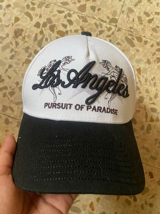 Gorra con diseño de Los Angeles y Pursuit of Paradise. - Parte frontal blanca con bordado. - Visera negra. - Detalle de estrellas bordadas.