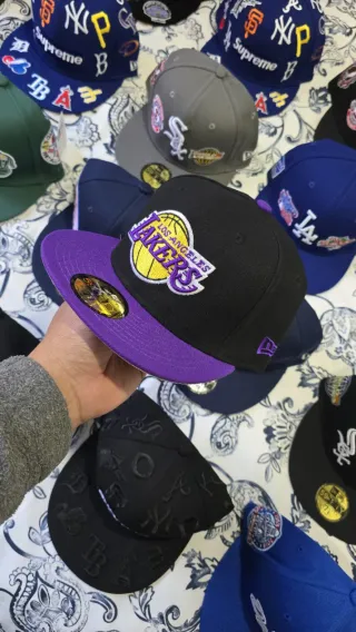 Gorra de los Lakers con visera morada y cuerpo negro. Un accesorio deportivo icónico. - Logo de Los Angeles Lakers bordado. - Visera plana. - Talla 7 3/8 *Oferta con visera plana* 1x23€ 2x40€