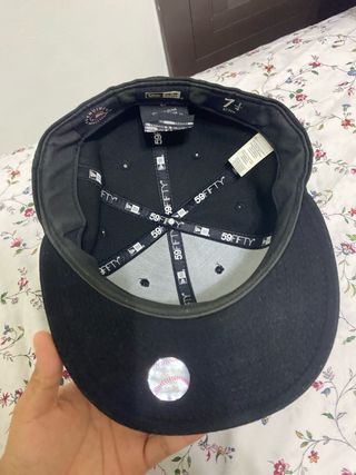Gorra New Era 59FIFTY de color negro con el logo SOX blanco Detalles: Es original pero tiene su tiempo entre 1-2 años -Esta medio curvado, no es plana total -No viene con ninguna pegatina porque la quite - Talla de cabeza (60.6cm) 7 (5/8)