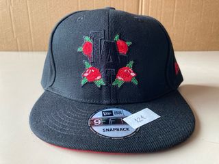 Gorra New Era con diseño de Los Angeles Dodgers y flores. - Logo LA bordado en blanco. - Detalle de rosas rojas bordadas en el lateral. - Visera plana. - Talla 7 3/8 (58.7cm).