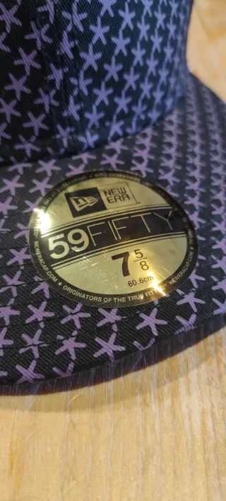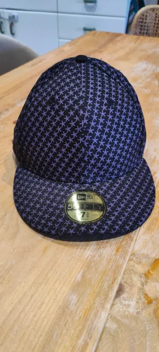 Gorra New Era 59FIFTY con un diseño de estrellas moradas sobre fondo negro. Es un accesorio de moda. Ideal para peña com flow u hombres que quieran esconder la calbície propia de la crisis de los 40 debajo de una gorra to guapa. - Diseño de estrellas moradas. - Modelo 59FIFTY.