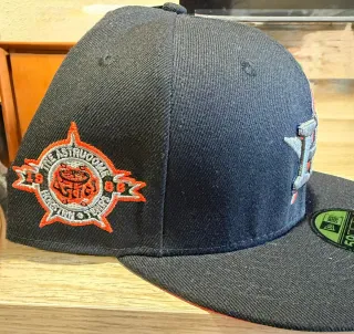 Gorra de béisbol de la marca New Era, con el logo de los Houston Astros. - Diseño con el icónico logo 'H' de los Astros. - Colores negro y naranja. - Talla 7 3/8 (58.7 cm).