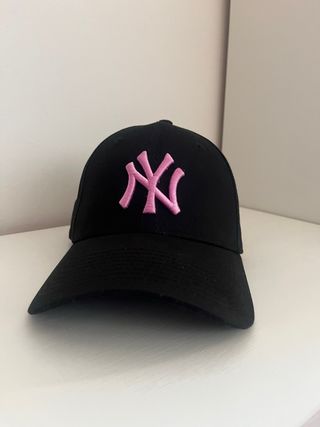 Gorra New Era con el icónico logo NY. - Color negro. - Logo bordado en rosa.