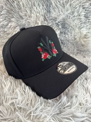 Gorra New Era A-Frame 9Forty con un diseño único. - Bordado frontal con el logo de Nueva York y flores rojas. - Cierre ajustable para mayor comodidad. - Visera curva clásica.