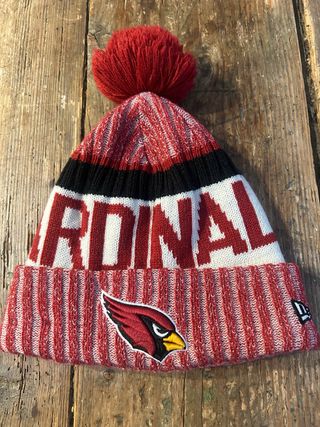 Gorro Beanie NFL Cardinalds by New Era. Como nuevo. Ver forro impecable. Puesto dos veces a mi hijo, he intentado bordar el nombre de la etiqueta, pero no he podido y lo he tachado. Talla única (aprox. 55-60 cm). 100% acrílico. Forro 100% poliéster (vellón) El símbolo de los Cardinals. La cabeza de fénix de los Arizona Cardinals decora este cálido y agradable gorro de punto de New Era. Como verdadero gorro beanie de American Sports, presenta los colores del equipo de la NFL. El borde vuelto ancho con patrón de punto acanalado y el forro polar mullido mantienen la cabeza abrigada y hacen que el uso de este gorro beanie sea agradablem