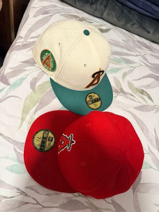 Lote de gorras New Era. - Gorra de color rojo con logo de los Angels. - Gorra de color crema con logo de los Angels y parche conmemorativo. - Gorra de color verde con logo de los Angels Precio por separado❗️