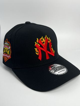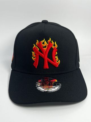 Gorra snapback New Era 9FORTY A-Frame con el logo de los New York Yankees en llamas. - Diseño frontal con el logo NY bordado en rojo y amarillo. - Parche lateral de la American League. - Ajustable en la parte trasera.