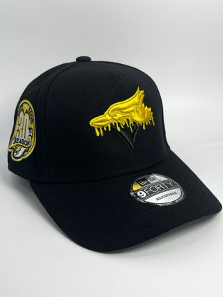 Gorra New Era 9Forty Toronto, Blue gays, color negro con dorado - Parche delantero con diseño de zorro dorado. - Parche lateral 30th Season en amarillo y blanco.