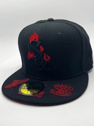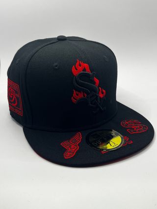 Gorra de béisbol New Era 59FIFTY de los Chicago White Sox. - Talla 7 1/4 (61.5 cm). - Diseño con logo bordado en blanco. - Detalle de llamas bordadas en blanco.