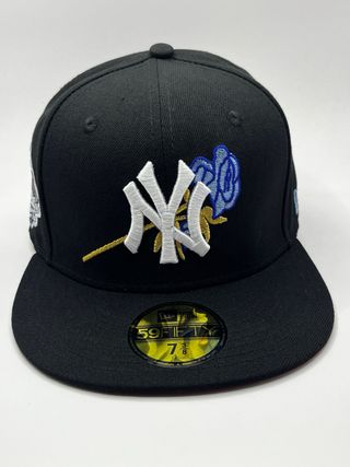 Gorra New Era 59Fifty con diseño de los Yankees. Talla 7 3/8 - Parche de la Serie Mundial 1999 en el lateral. - Bordado de los Yankees en blanco y dorado. - Detalle floral azul y dorado en el frente. - Etiqueta 59FIFTY en la visera.