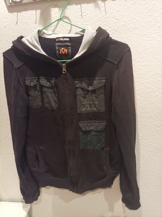 Chaqueta impure de chico ,talla S, negra , 100% algodón, hecha en España. Lleva gorro, cierre con cremallera, varios bolsillos delante.