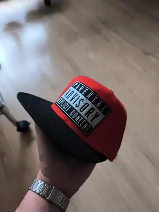Gorra plana con el distintivo Parental Advisory Explicit Content. - Diseño llamativo. - Visera plana. - Nueva. - Precio negociable.