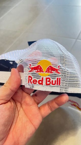 Gorra de la marca Red Bull. - Diseño con los icónicos toros rojos y el sol. - Bordado del logo Red Bull en la parte frontal.