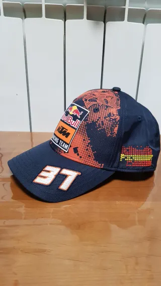 Gorra negra con el logo de Red Bull KTM Racing Team. - Diseño con el logo de Red Bull y KTM. - Detalles naranjas. - Cierre ajustable. -Sin usar, una de ellas no lleva etiqueta pero porque se cayó.