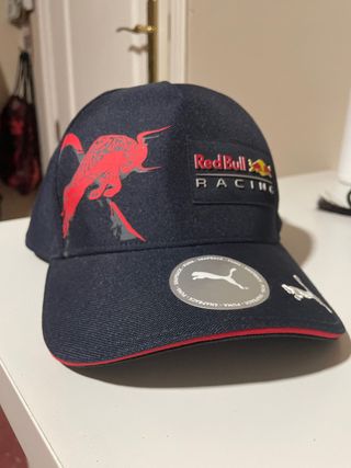 Gorra de Red Bull Racing con un diseño llamativo. - Detalle de toro rojo en la parte frontal. - Logo de Red Bull Racing bordado. - Cierre ajustable tipo snapback. - Logo de Puma en la visera.