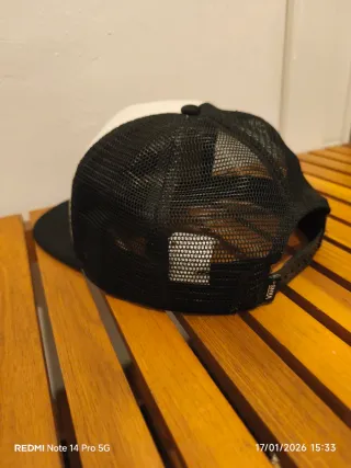 Gorra de la marca Vans con el icónico logo Off The Wall. - Diseño en blanco y negro. - Estilo trucker con visera. - Parche bordado en la parte frontal.