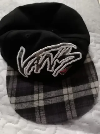 Se vende Gorra de la marca Vans en color negro. Fabricada en tejido sintético con rejilla en la parte trasera. Banda interior de tejido natural. Parche frontal con el diseño del monopatín con la marca y el texto "off the wall". En muy buenas condiciones. Se le ha cortado la etiqueta interior. Se entrega en Vic y se hacen envíos.