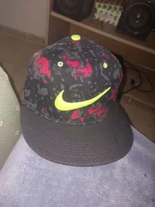 Gorra de la marca Nike con un diseño llamativo. - Estampado con detalles en rojo y verde neón. - Visera plana. - Logo de Nike en color verde neón.