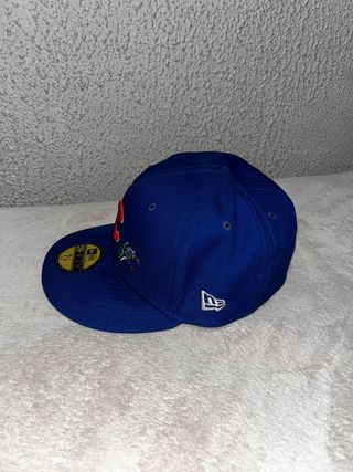 Gorra original New Era 59FIFTY de los Chicago Cubs, en color azul. Diseño exclusivo con bordados florales y abeja alrededor del logo “C”, y visera plana con interior floral muy llamativo. - Estado: muy buen estado - Talla: 7 1/8 (56,8 cm) - Modelo fitted (no ajustable) - Pegatina original New Era en la visera - Logo New Era bordado en el lateral Gorra ideal para coleccionistas, streetwear o looks urbanos. Difícil de encontrar en este diseño. Envío rápido y bien protegido