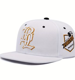 Gorra de estilo snapback con un diseño moderno. - Bordado frontal con iniciales. - Detalle de escudo lateral con texto. - Visera plana.