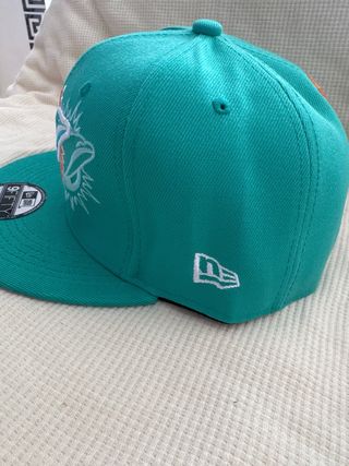 Gorra de béisbol New Era con el logo de los Dolphins. Es un modelo Snapback ajustable. - Diseño con los colores verde y naranja. - Visera plana. - Logo de New Era en el lateral.