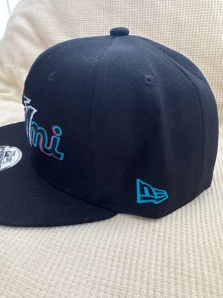 Gorra de béisbol con el logo de los Miami Marlins. - Diseño snapback. - Visera plana. - Logo bordado multicolor.