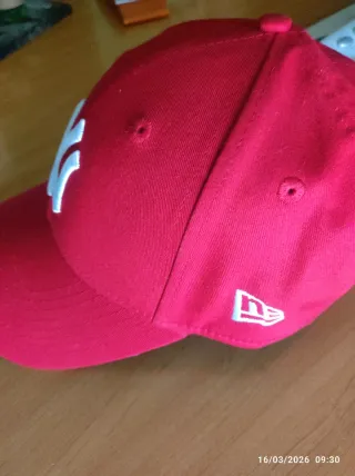 Gorra de béisbol New Era con el logo de los New York Yankees. - Color rojo vibrante. - Detalle del logo NY en blanco en la parte frontal. - Parche conmemorativo en el lateral izquierdo. - Cierre ajustable tipo snapback.