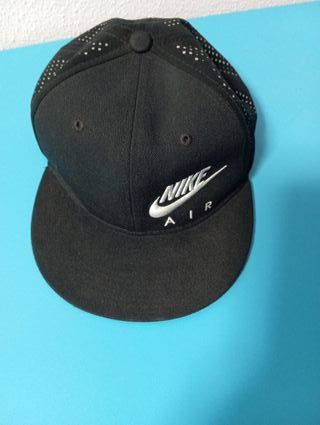 Gorra de la marca Nike en color negro. Diseño moderno y deportivo. - Logo de Nike bordado en blanco. - Detalle de perforaciones en la parte superior. - Visera plana.
