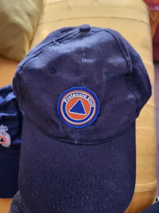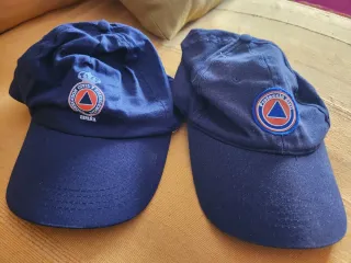 Dos gorras de Protección Civil - Diseño azul marino. - Parche circular con emblema de Protección Civil - Inscripción ESPAÑA en una de las gorras. - Ajustables en la parte posterior. - Coleccionismo.