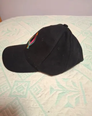 Se vende gorra de chico de la marca "DKPS", ajustable a cada cabeza. Es de color negro y tiene un logo multicolor bordado en la parte delantera y una inscripción en la parte trasera. Por favor, solo contactadme a traves de este chat.