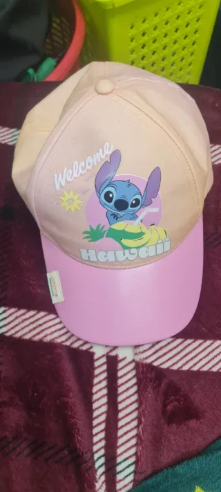 Gorra con diseño de Stitch, perfecta para un toque divertido. - Estampado Welcome Hawaii con Stitch. - Colores principales: rosa y amarillo.