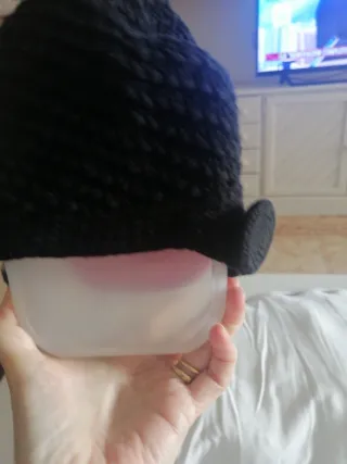 Gorro de punto negro con un toque brillante. - Detalle de pequeñas pedrerías dispersas. - Ribete inferior acanalado.