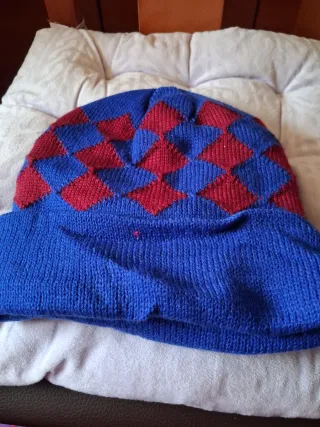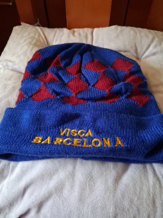 Gorro de lana con el diseño característico del equipo de Barcelona. - Tejido de punto. - Diseño a cuadros en azul y rojo. - Bordado Visca Barcelona en hilo dorado.
