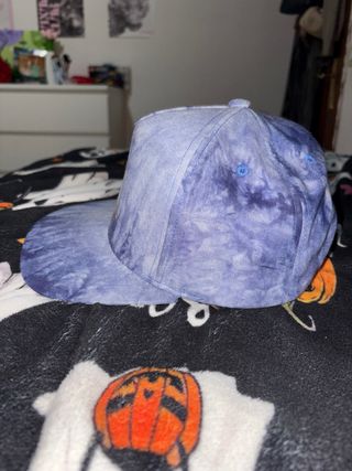 Gorra con un diseño tie-dye en tonos morados y azules. Presenta el símbolo de las Reliquias de la Muerte en la parte frontal. - Diseño tie-dye. - Símbolo de las Reliquias de la Muerte.