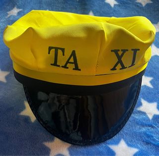 Gorra de disfraz con el texto TAXI. - Color amarillo brillante. - Visera negra brillante.