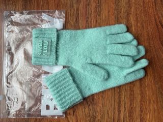 Conjunto de gorro, guantes y bufanda en color verde azulado. - Gorro de punto con etiqueta. - Guantes de punto con etiqueta. - Bufanda de punto con etiqueta.