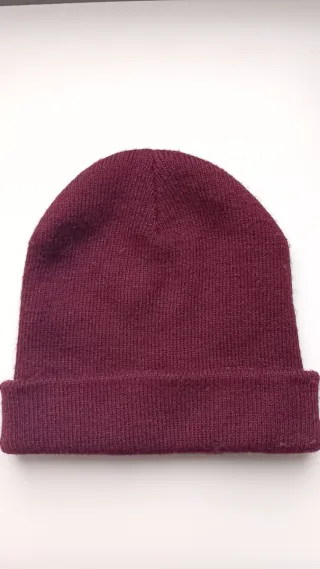 Gorro de lana color vino tinto, ideal para el frío. - Tejido de punto. - Diseño clásico y versátil.