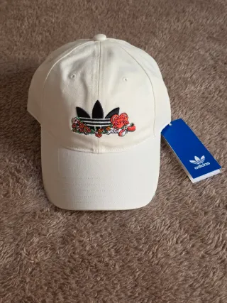 Gorra de la línea Adidas Originals con un diseño floral bordado. - Color blanco. - Logo de Adidas con detalle de flores y corazón. - Cierre ajustable.