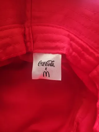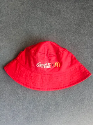 Gorro de pescador en colaboración entre Coca-Cola y McDonald's. - Diseño llamativo en color rojo. - Logo de Coca-Cola y McDonald's bordado.