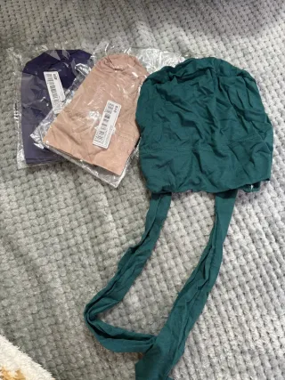 Conjunto de gorros en tonos marrones y verdes. El paquete incluye 3 unidades. - Gorro de color verde. - Gorro de color marrón.