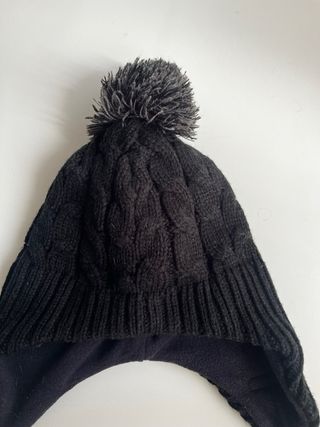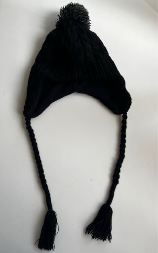 Gorro de lana negro con pompón y orejeras