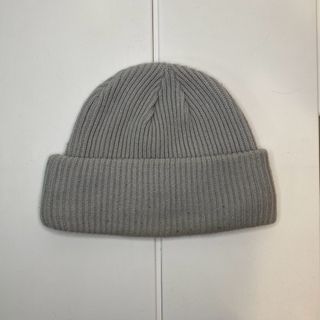 Gorro de punto de canalé en color gris usado en buen estado. - Etiqueta de la marca cosida en el lateral.