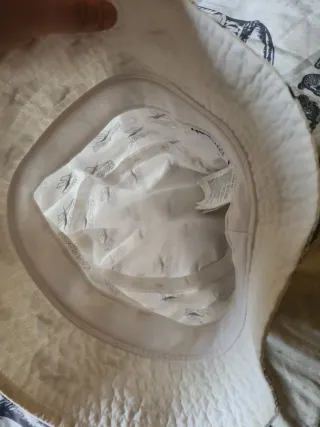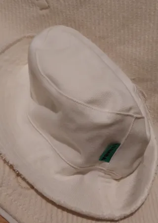 Gorro de pescador de la marca Bimba y Lola. - Color blanco. - Etiqueta verde con logo.