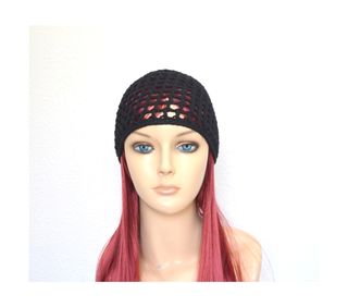 Gorro casquete de malla o calavera a crochet negro